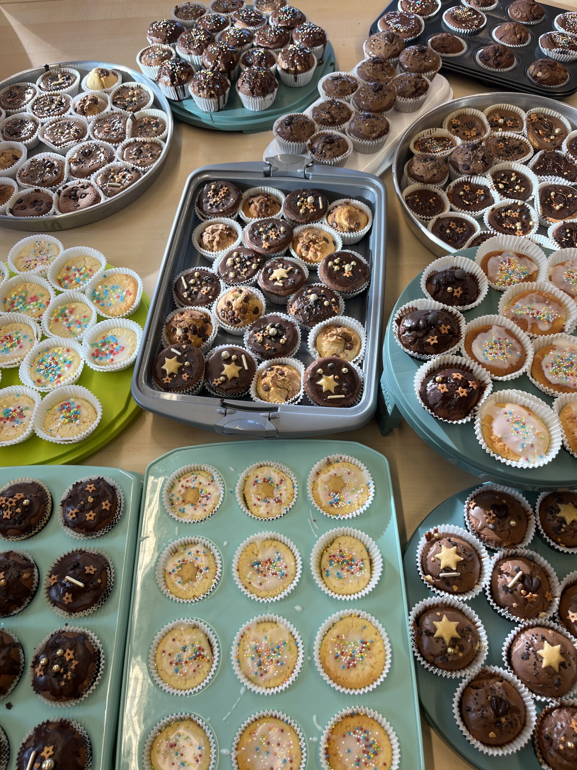 Im Rahmen ihres Corporate-Volunteering-Tages haben fünf unserer SIXT-KollegInnen den Verein „Sunu Dome e.V.“ bei den Vorbereitungen für die jährlich stattfindende Weihnachtsfeier unterstützt. Nachdem die eingelagerte Dekoration zum Veranstaltungsort gebracht und die letzten Einkäufe erledigt worden waren, konnte die Hauptaufgabe des Tages beginnen: Die Mitarbeitenden backten und verzierten gemeinsam 165 Muffins für die Weihnachtsfeier und hatten dabei jede Menge Spaß.
