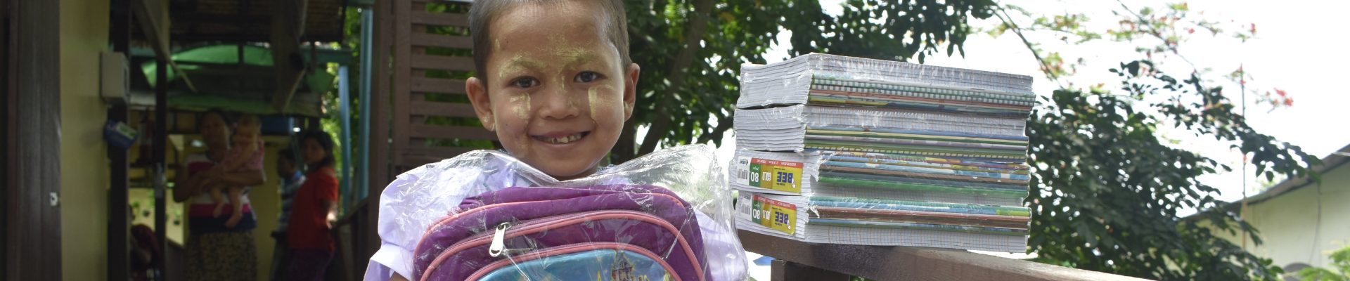 448 Kinder aus den ärmsten Vierteln Yangons erhalten durch Schulunterstützungspakete die Chance auf eine bessere Bildung und Zukunft. Die Regine Sixt Kinderhilfe Stiftung TRÄNCHEN TROCKNEN finanziert gemeinsam mit der SANNI Foundation und deren lokaler Partnerorganisation Medical Action Myanmar (MAM) wichtige Bildungshilfen für sozial benachteiligte Kinder aus Slum-Gebieten.