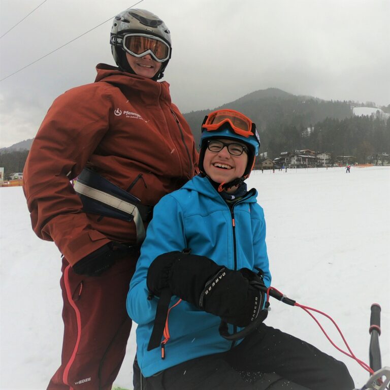 As early as 2022 Two skibob training days were realized thanks to a donation from the Regine Sixt Children's Aid Foundation. In winter 2023, the Pfennigparade Foundation was able to offer several skibob family days and a skibob training camp in Söll in the Kaiser Mountains. These events are considered pure barrier-free winter fun. The participants learned to ski with adapted ski equipment, the so-called skibobs, which are equipped with new parallelogram foot systems. Skibob training allowed the whole family to be on the slopes together and enjoy skiing. This is often not a given for families with a child with a disability and is often even impossible. The joy on our part is all the greater to make these experiences possible.