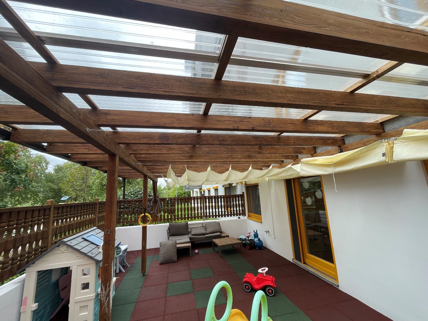 Dank der Regine Sixt Kinderhilfe Stiftung konnten die neu bezogenen barrierefreien Räumlichkeiten der Malteser Care Krisengruppe vollständig und kindgerecht mit neuen Möbeln, Haushaltsgeräten und pädagogischem Spielmaterial ausgestattet werden. Zudem wurde die Terrasse nivelliert und mit kindgerechten Fallschutzmatten sowie einer sicheren, wetterfesten Beschattung ausgestattet, sodass der Außenbereich auch bei starker Sonneneinstrahlung oder Regen genutzt werden kann.